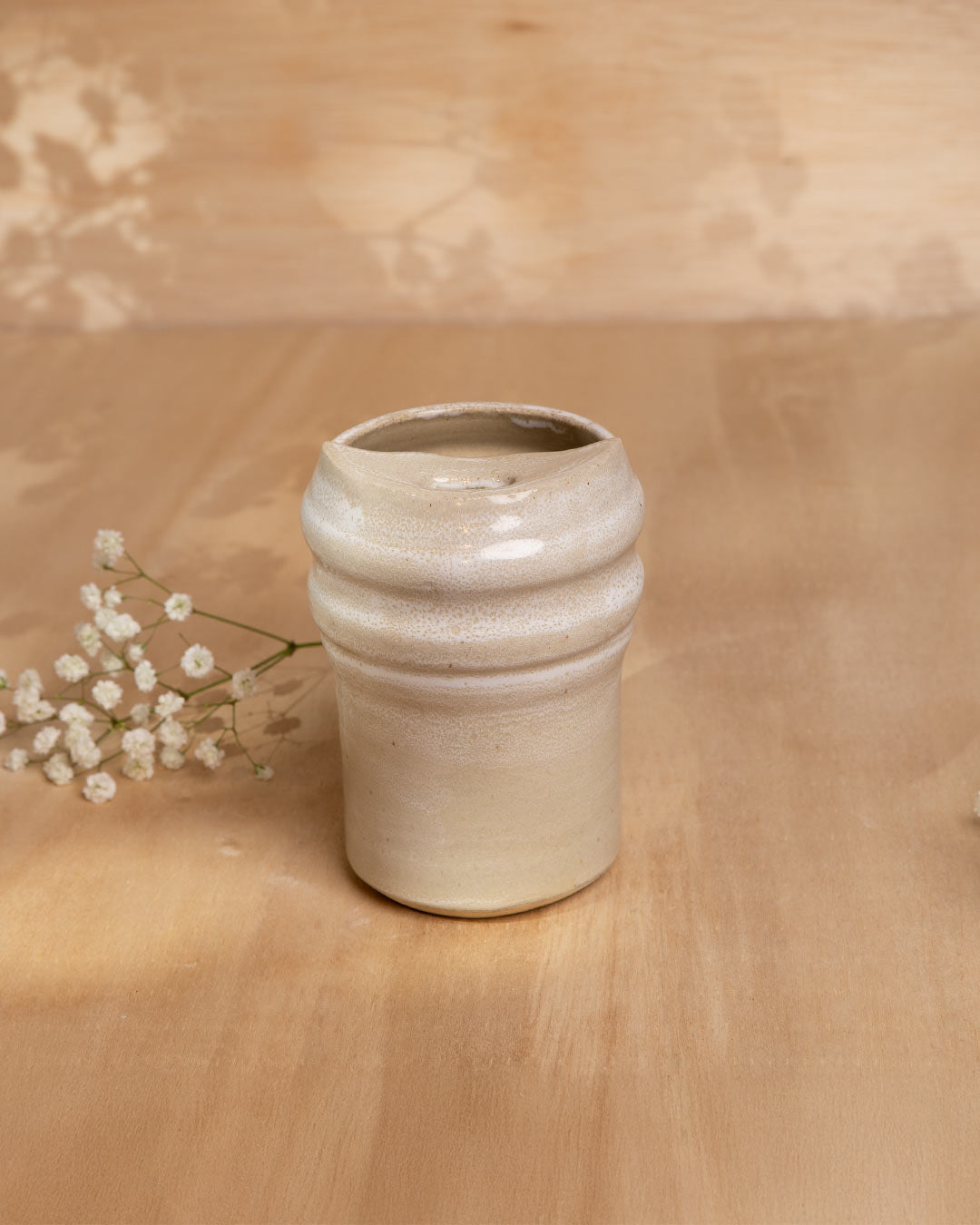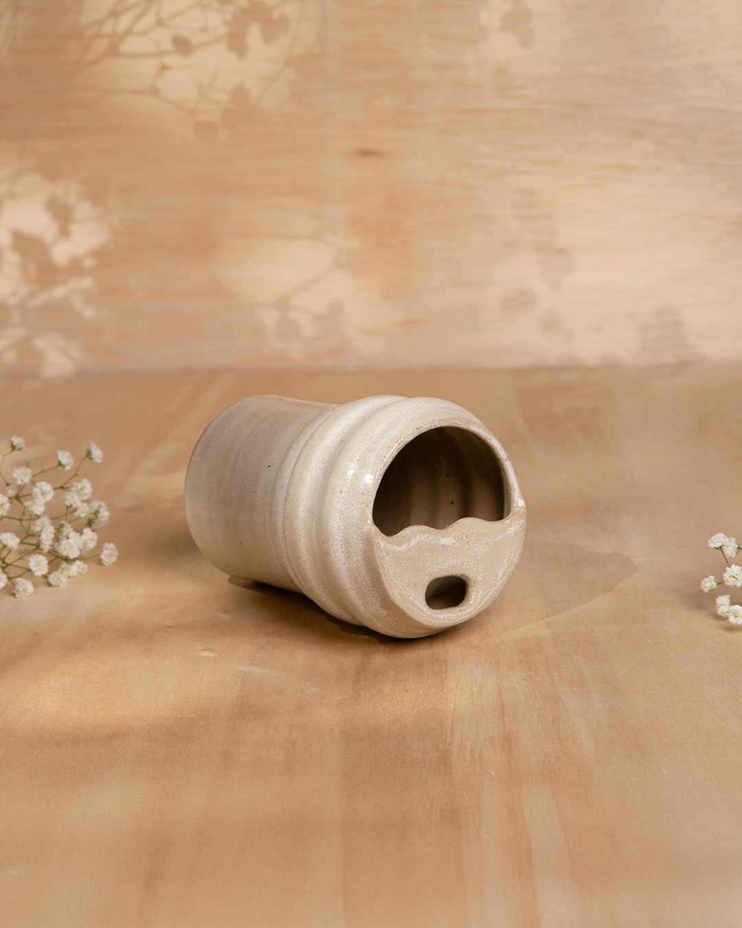 The Low Tide Straw Cup is inspired by the coastal beauty of waves and sea foam as they meet the sand. Each cup is handmade from stoneware clay and finished with a glossy glaze that evokes the calming movement of the tide, bringing a touch of the ocean to your everyday sip.